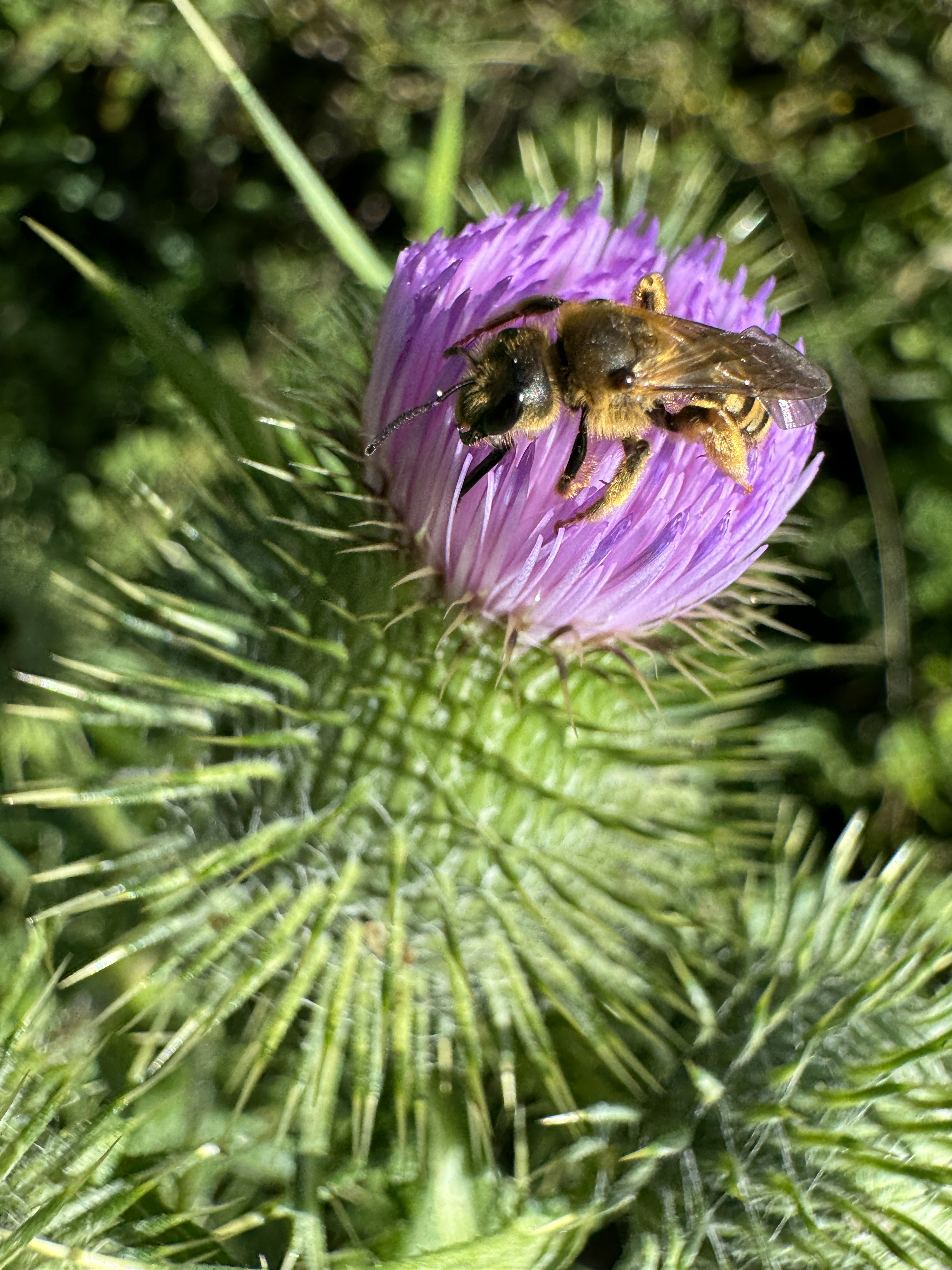C’est en 2023 que j’ai installé mes deux premières colonies sur ce terrain magnifique, gracieusement prêté par Constance. Mon conjoint, toujours prêt à donner un coup de main, s’occupe de l’entretien régulier de cet espace, ce qui me permet de me concentrer pleinement sur le soin de mes petites protégées. En tant qu’apicultrice, j’ai vite appris que l’apiculture va bien au-delà de la simple production de miel. C’est un engagement quotidien, une attention constante aux besoins des abeilles et à leur environnement.